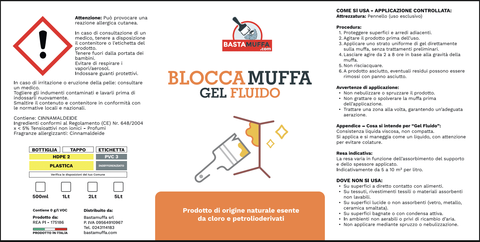 La sua particolare consistenza fluida viscosa consente al prodotto di aderire più a lungo alle superfici inclinate o difficili da trattare, favorendo un contatto prolungato con la muffa attiva.